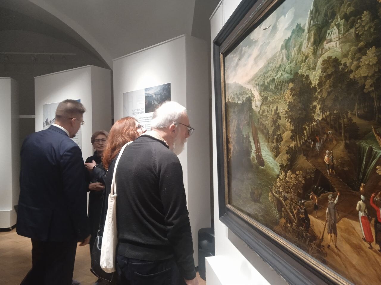 Презентация отреставрированного «Горного пейзажа с рекой и жанровыми сценами» прошла при большом скоплении народа. Увидеть картину пришли известные тверские художники и искусствоведы, общественники и журналисты, да и просто любители живописи.