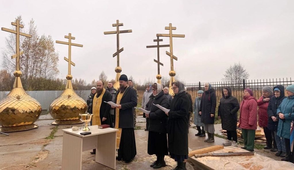 После завершения молитвы и окропления святой водой, строители приступили к завершающим работам – установке куполов с крестами, сообщили в Тверской епархии.