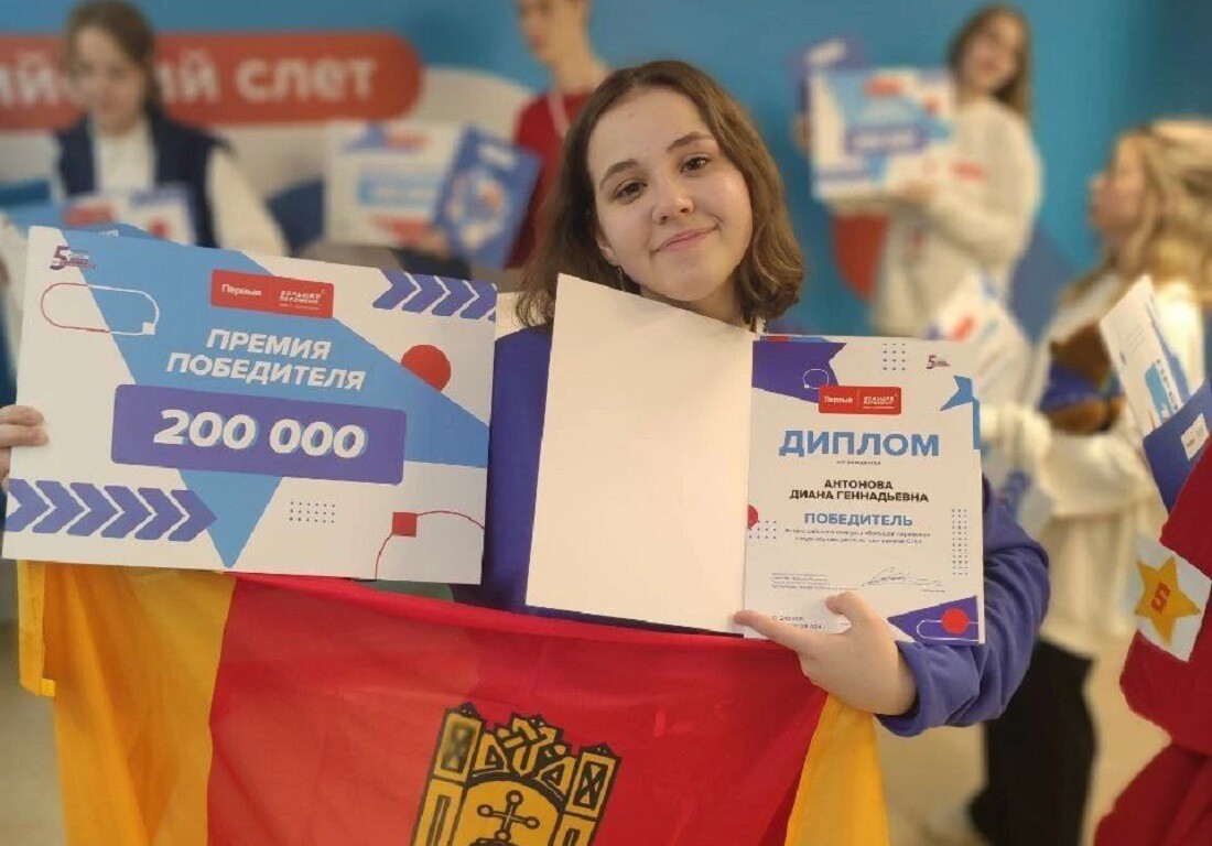 О итогам конкурса победительницей была признана представительница Тверской области Диана Антонова. Она получила премию и сертификат на поездку по программе «Больше, чем путешествие». Напомним, что эта программа позволяет увидеть уникальные места России, познакомиться с достижениями университетов и промышленных предприятий, разработать свой социально значимый проект.