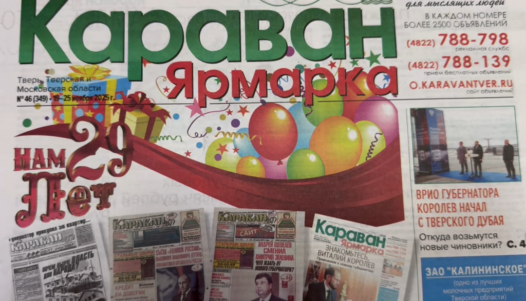 В середине ноября 2025 года тверской еженедельник «Караван» отметил свое 29-летие. Это своего рода предъюбилей….