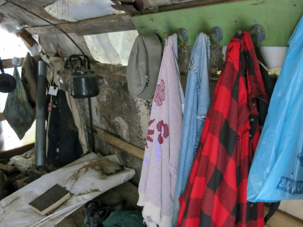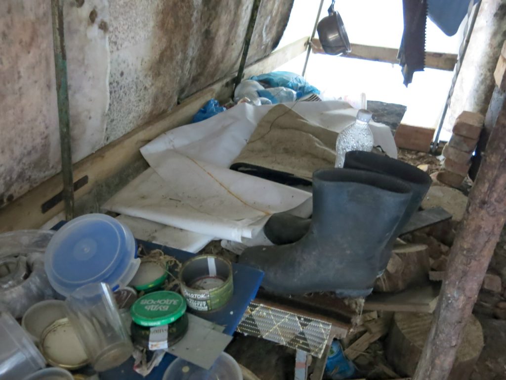 В домике жуткий беспорядок, но среди мусора есть почти чистая одежда, годные чайники и даже книга – собрание сочинений Карлам Маркса и Фридриха Энгельса.