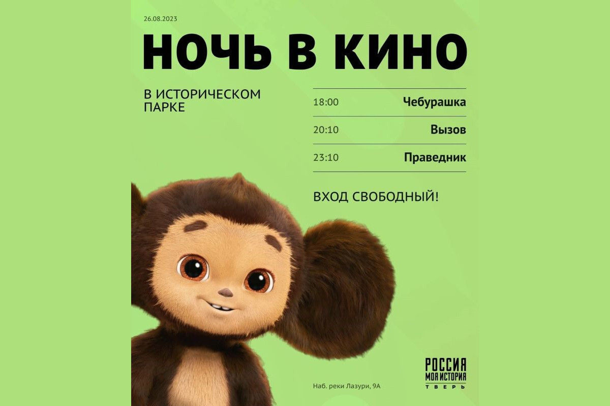 В мультимедийном историческом парке «России – Моя история» пройдут кинопоказы тех же фильмов, но позже. Так, «Чебурашку» (6+) покажут в 18:00, «Вызов» (12+) в 20:10, а «Праведника» (12+) в 23:10.
