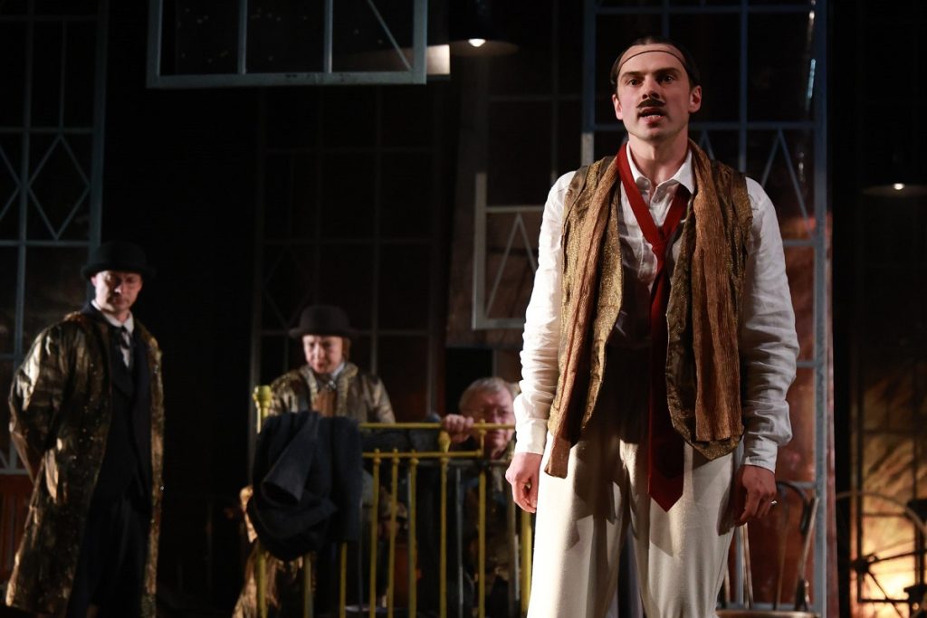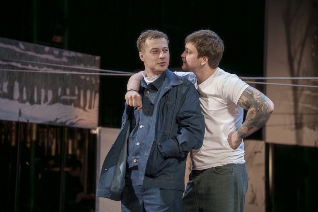 Вторая: плюньте на даты написания текстов и время действия. Про Эйнштейна слышали? Так вот: есть хронотоп, физически единое «время-пространство». И есть свободная творческая мысль, творящая этот самый хронотоп на сцене по собственным, изумительно свободным правилам. Поэтому – современные костюмы, детали интерьеров, музыка…