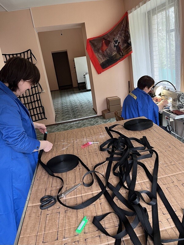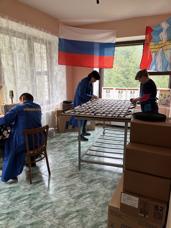В помещении в деревне Оковцы, которое компания уже семь лет арендует у монастыря Нило-Столобенская пустынь, компания вместе с местными жителями организовала два небольших цеха по изготовлению носилок-переносок для раненых бойцов и гигиенических пакетов «сухой душ». Все расходы на материалы и оплату труда работникам компания «ОКОВЦЫ» взяла на себя. Важно, что на это благое дело «ОКОВЦЫ» благословил наместник монастыря Нило-Столобенская пустынь игумен Гавриил (Баглай).