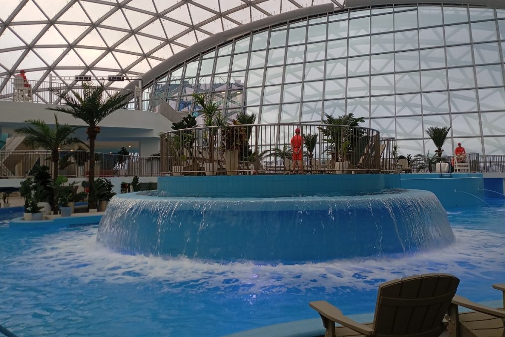 По словам Сергея Бачина, он одновременно может принять до 1,5 тысячи человек. При этом возрастного ограничения в нем нет – гости могут приезжать в том числе с маленькими детьми. Для посетителей аквапарк откроют в декабре.