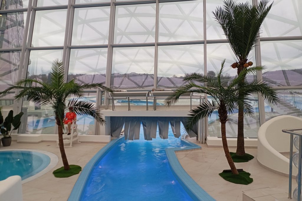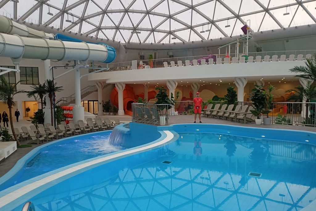17 аттракционов и горок общей протяженностью порядка километра, «ленивая река» длиной 260 метров, 18 бассейнов, причем два из них под открытым небом, игровые зоны для детей, велнес-пространство, ресторан и несколько кафе, крыша с эффектом открытого неба – все это первый в Тверской области и крупнейший в центральной России крытый аквапарк «Завидово Аква & СПА», расположенный на территории единственной в ЦФО особой экономической зоны туристско-рекреационного типа «Завидово».