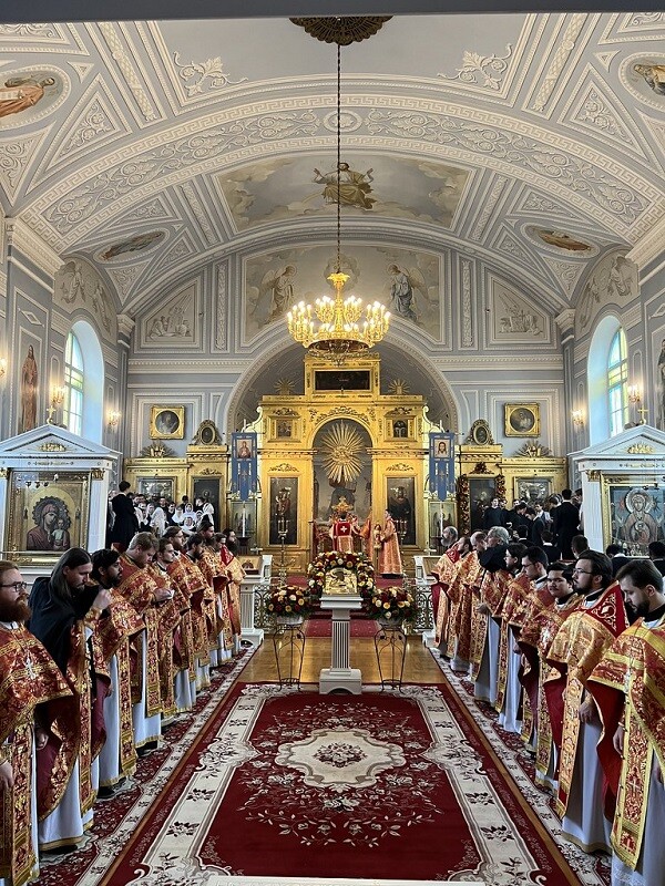 Тверской владыка возглавил Божественную литургию в академическом храме академии. Ему сослужили: епископ Тихвинский и Лодейнопольский Мстислав, ректор СПбДА епископ Петергофский Силуан, ректор Московской духовной академии епископ Сергиево-Посадский и Дмитровский Кирилл, секретарь епархиального управления Санкт-Петербургской митрополии протоиерей Сергий Куксевич, архимандриты Августин (Никитин) и Захария (Мулингва), ректор Вологодской духовной семинарии протоиерей Алексей Ольховников, первый проректор Ярославской духовной семинарии иеромонах Сергий (Барабанов), преподаватели и выпускники Санкт-Петербургской духовной академии, духовенство Санкт-Петербурга.