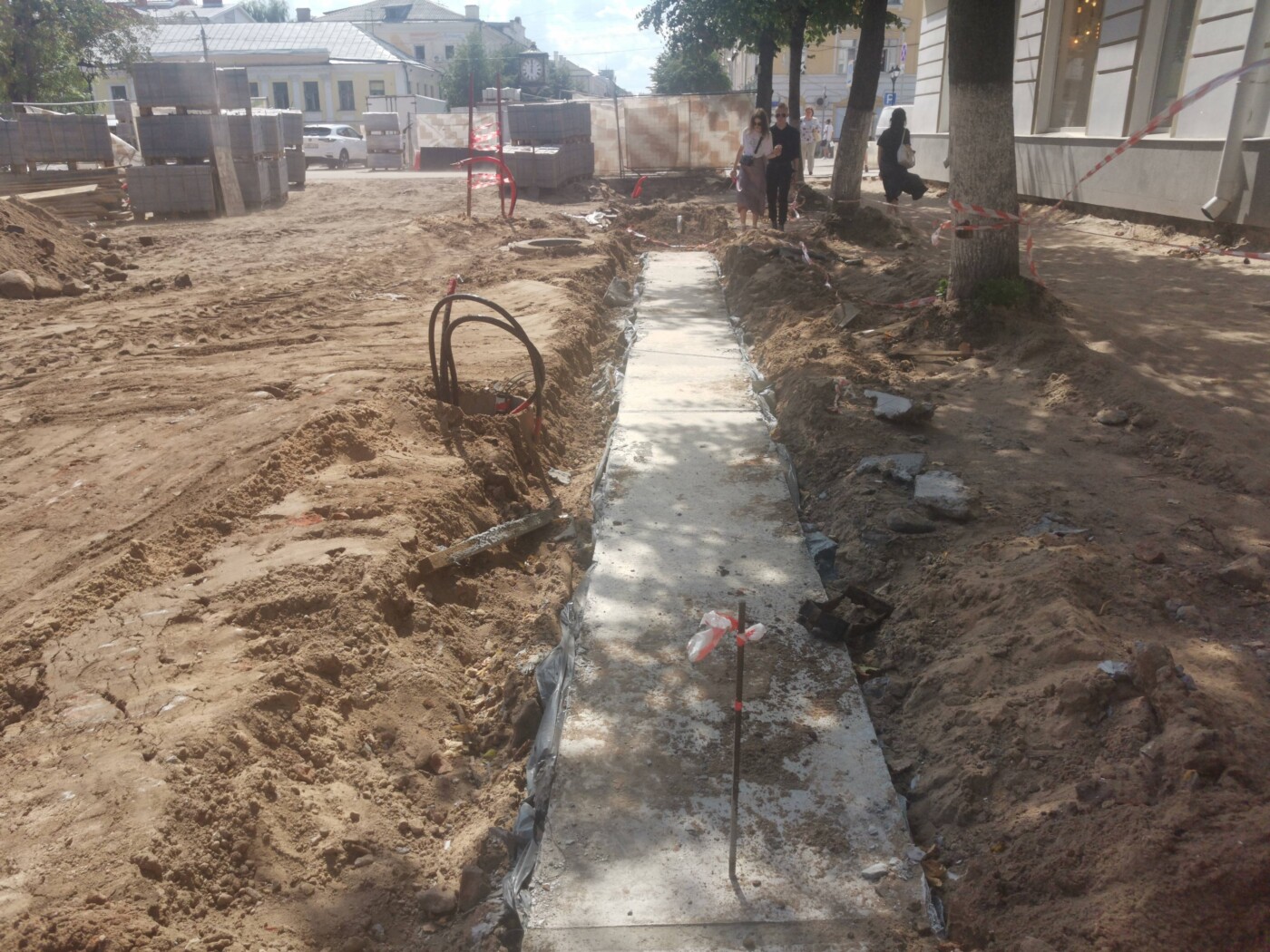 Жители столицы Тверской области свободно ходят по раскопанному участку Трехсвятской.