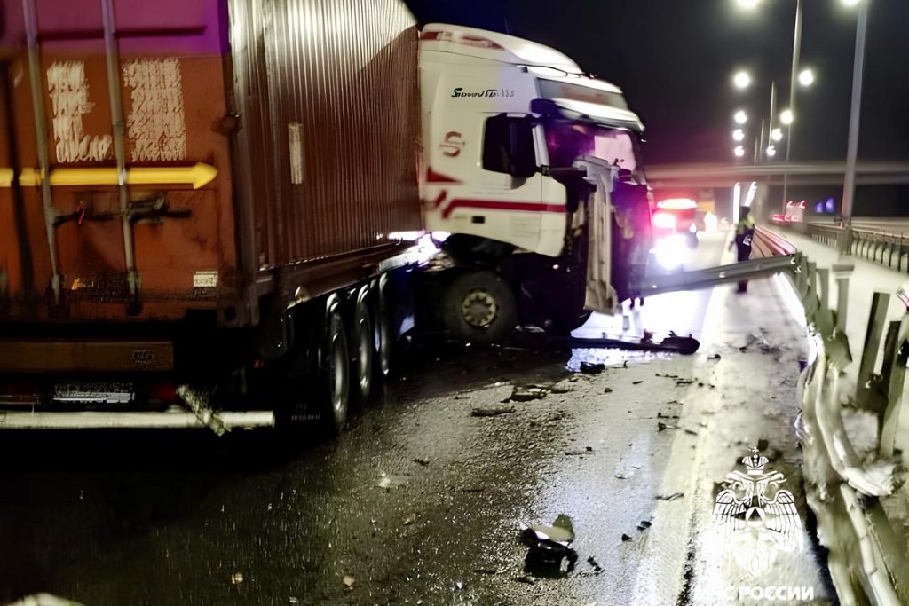 Вечером 21 ноября на 283 километре скоростной трассы М-11 «Нева» лоб в лоб столкнулись грузовой и легковой автомобили.