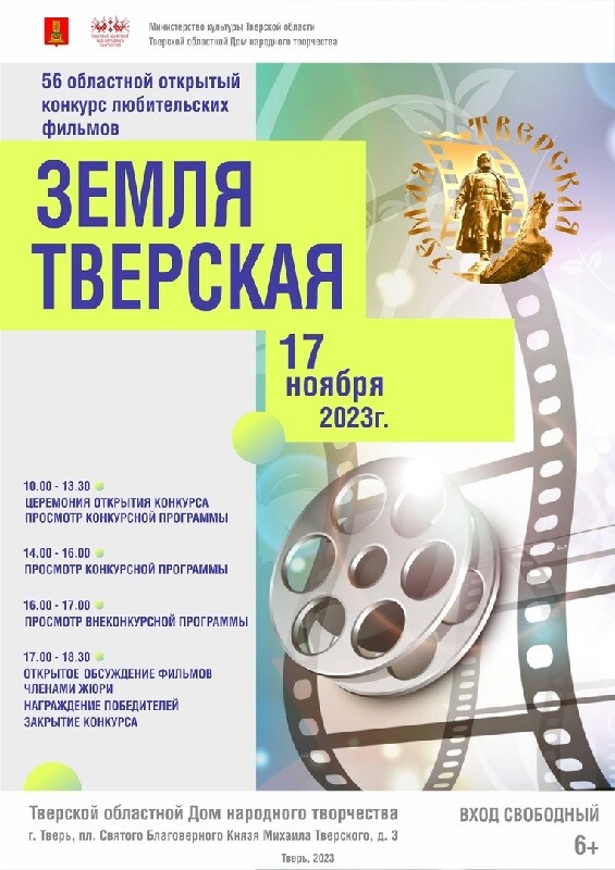 17 ноября в Твери пройдет 56-й областной открытый конкурс любительских фильмов «Земля Тверская». Просмотры конкурсных фильмом состоятся в Тверском областном Доме народного творчества.