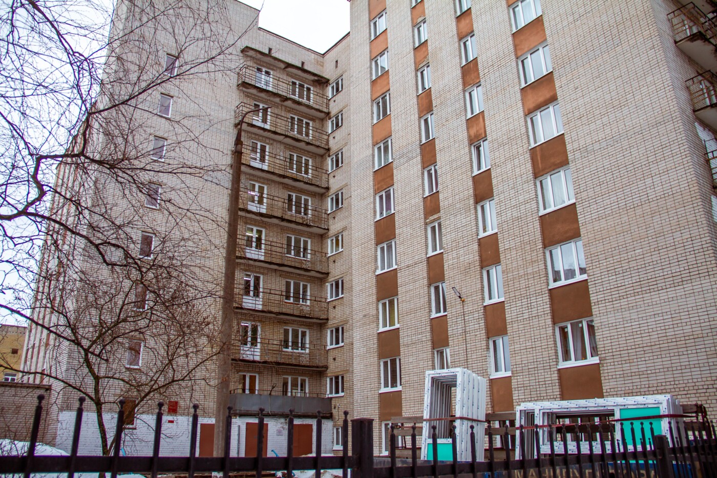 Сообщается, что новые пластиковые окна установлены в комнатах и квартирах корпусов общежитий «В», «Г», № 1, № 2 и № 3, а также в холлах и на балконах.