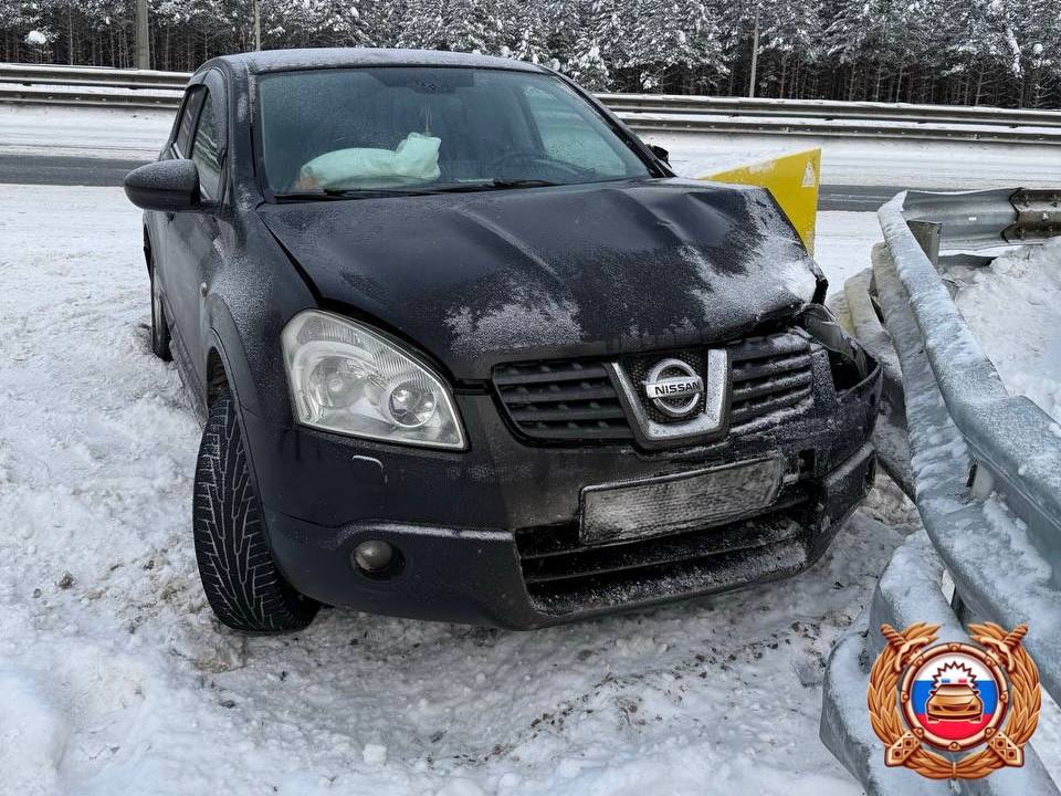 59-летний водитель, за рулем автомобиля «Ниссан», не справился с управлением, вследствие чего совершил наезд на металлический отбойник.