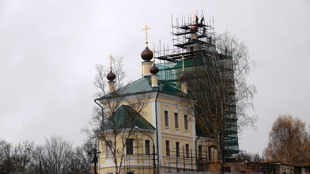 Как отметили в Тверской епархии, крест на колокольню водружали согласно древнему обычаю без использования специальной техники.
