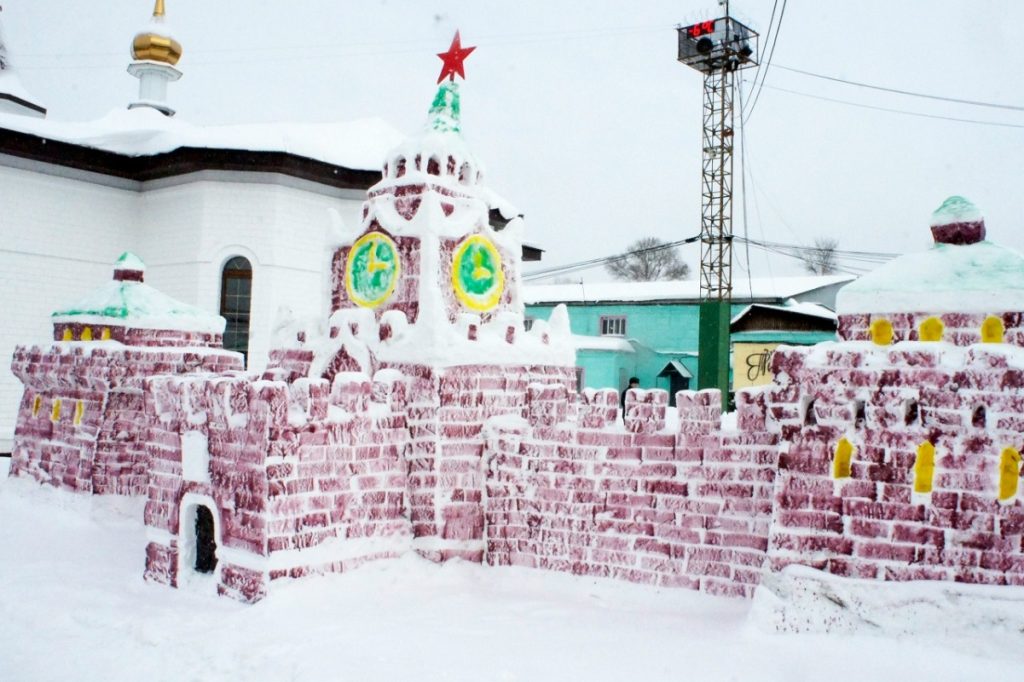 В создании снежных композиций участвуют осужденные из всех отрядов. Благодаря их стараниям на территории жилой зоны колонии появились снежный Кремль, богатыри, матрешки, медведи и другие скульптуры, большинство из которых превышает человеческий рост.