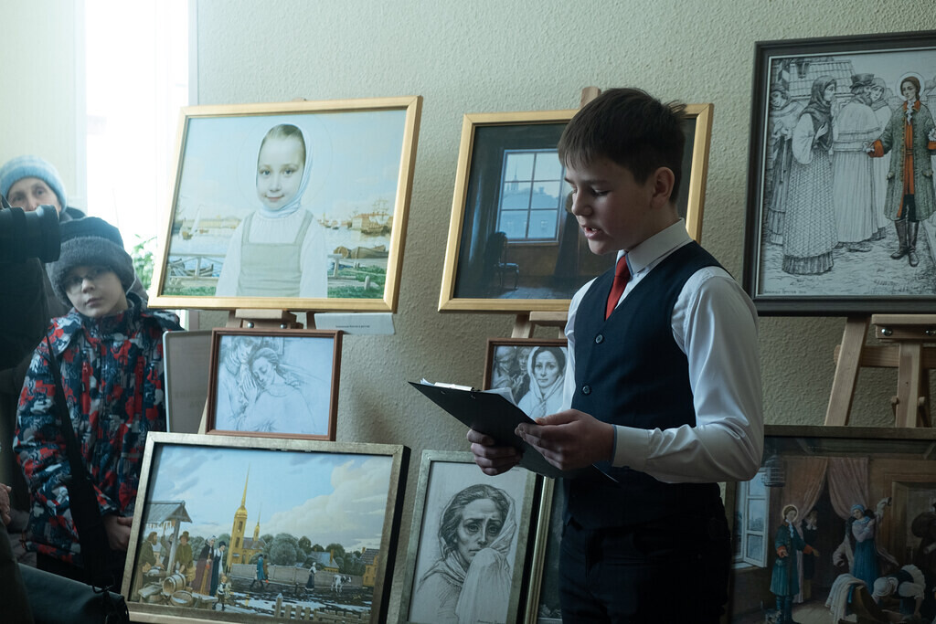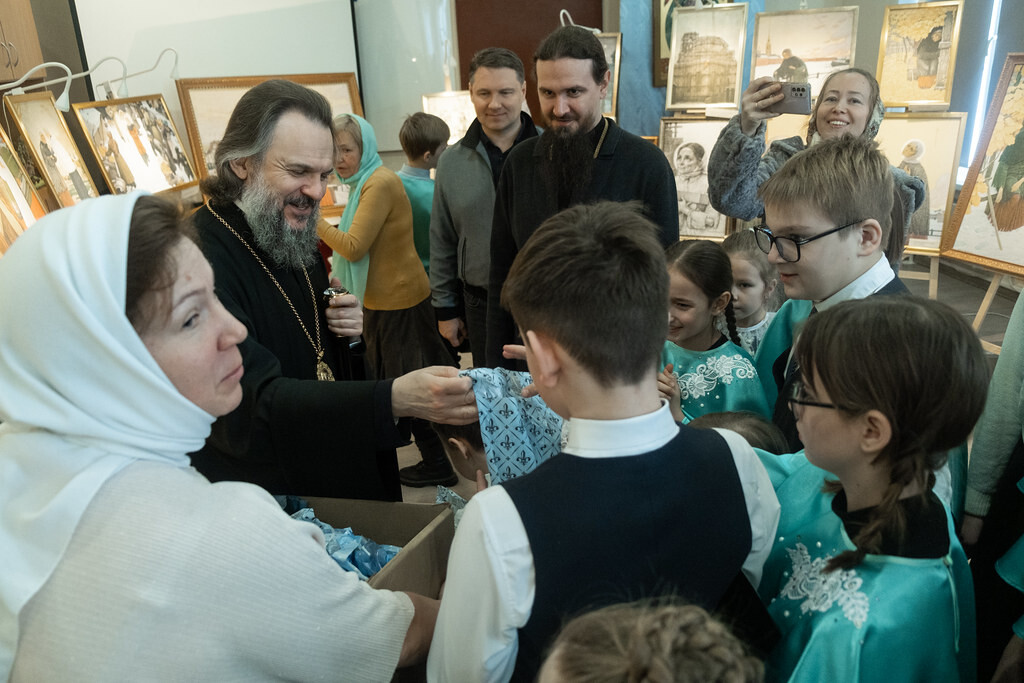 В честь открытия выставки ученики воскресной школы подготовили концерт, а также провели первую экскурсию.