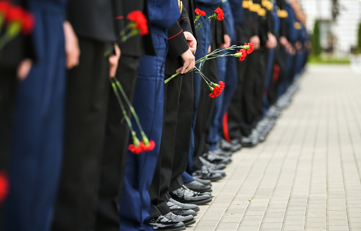 Участники церемонии почтили минутой молчания тех, кто не вернулся из боя, а потом возложили к стеле цветы. В память о погибших товарищах суворовцы прошли торжественным маршем.