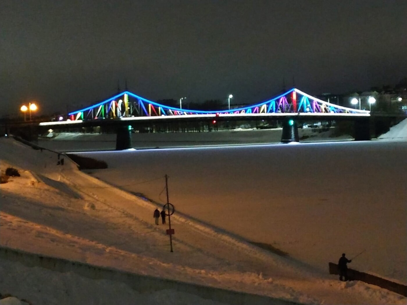В Твери продолжается украшение улиц к Новому году. Вечером 21 декабря тверитяне обнаружили новую подсветку у Старого моста.
