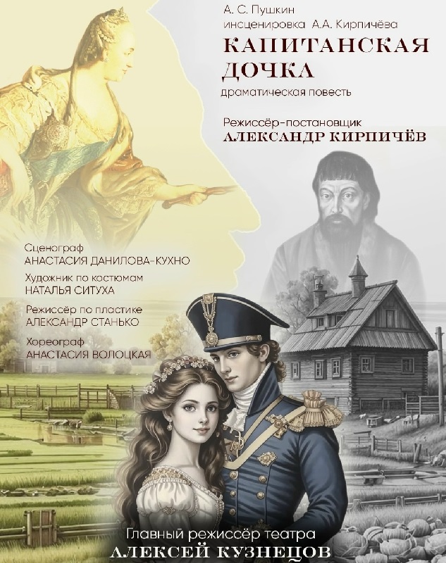 Спектакль «Капитанская дочка» по одноименной повести А.С. Пушкина поставил режиссером Александром Кирпичевым по одноименной повести А. С. Пушкина. Он же написал инсценировку.Как отмечают в Вышневолоцком театре, постановку отличает бережное отношение к авторскому тексту и замыслу.