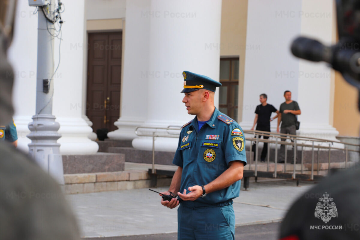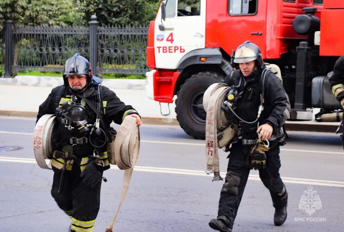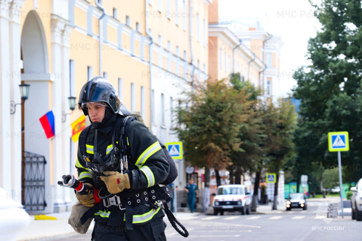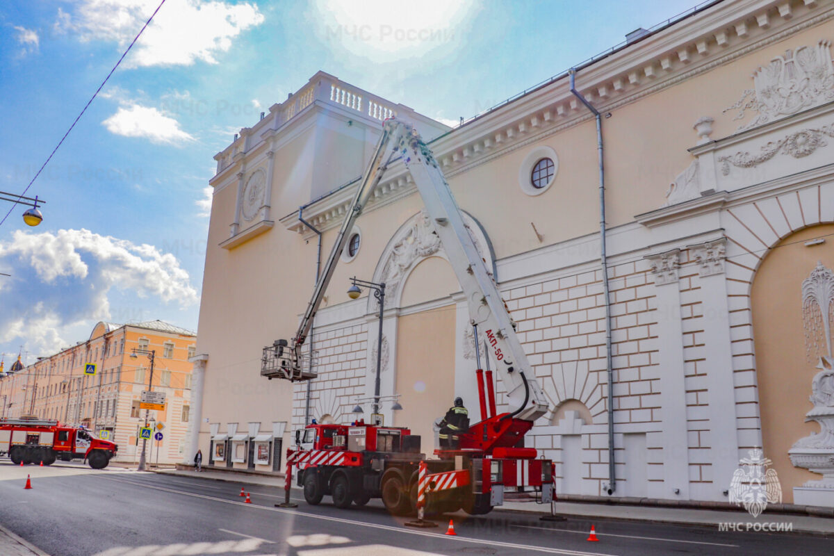 Сотрудники Тверского пожарно-спасательного гарнизона провели в Твери тренировочное пожарно-тактическое учение, в рамках которого «ликвидировали пожар» в Тверском академическом театре драмы.