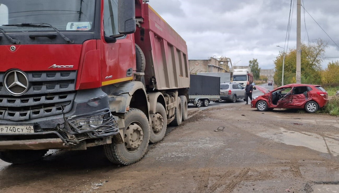 Как сообщил «Каравану» очевидец происшествия, напротив силикатного завода у автозаправки на повороте дороги, ведущей к карьерам, самосвал Mercedes протаранил Kia Pio. От удара легковой автомобиль отлетел в сторону.