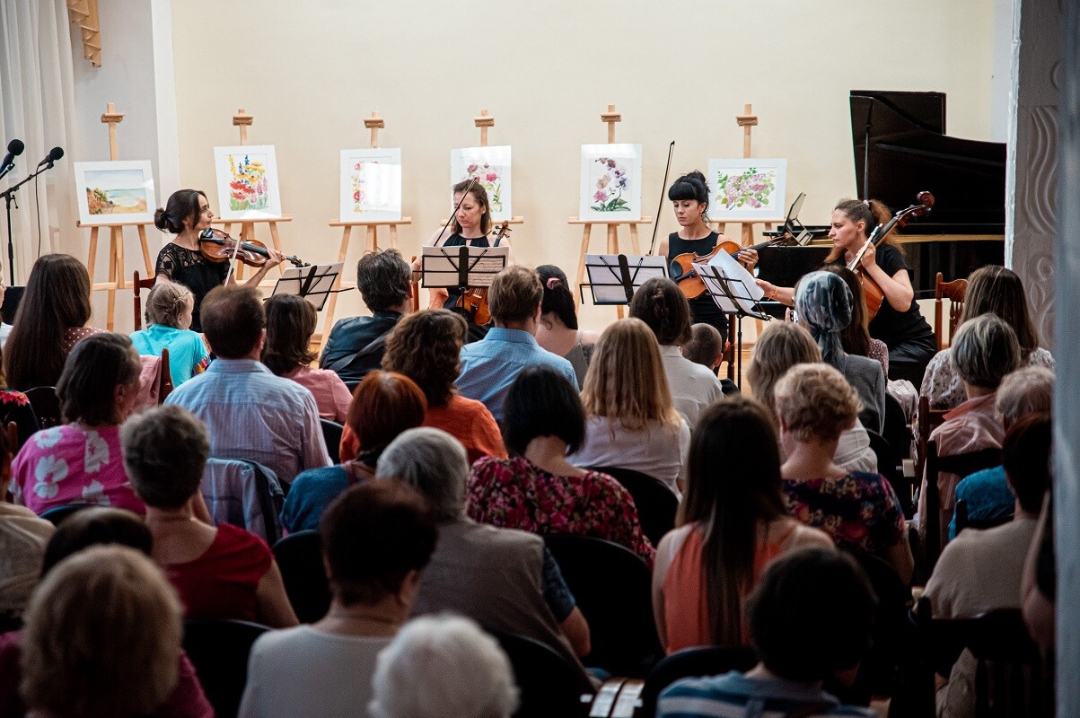 В актовом зале библиотеки прозвучали произведения Баха, Чайковского, Бородина, Генделя, Шостаковича, Таривердиева и других композиторов. Перед зрителями выступили первая скрипка губернаторского камерного оркестра «Российская камерата» Анна Мильтонян, скрипачки Елена Черкашина, Евгения Филиппова, Анна Позднякова, Анастасия Малышева, альтистка Наталья Иванова, виолончелистка Мария Иванова и пианистка Ольга Никитина. Зал украшали акварельные работы художника Светланы Куровой, выпускницы Тверского художественного колледжа А. Г. Венецианова, педагога, психолога и путешественницы.