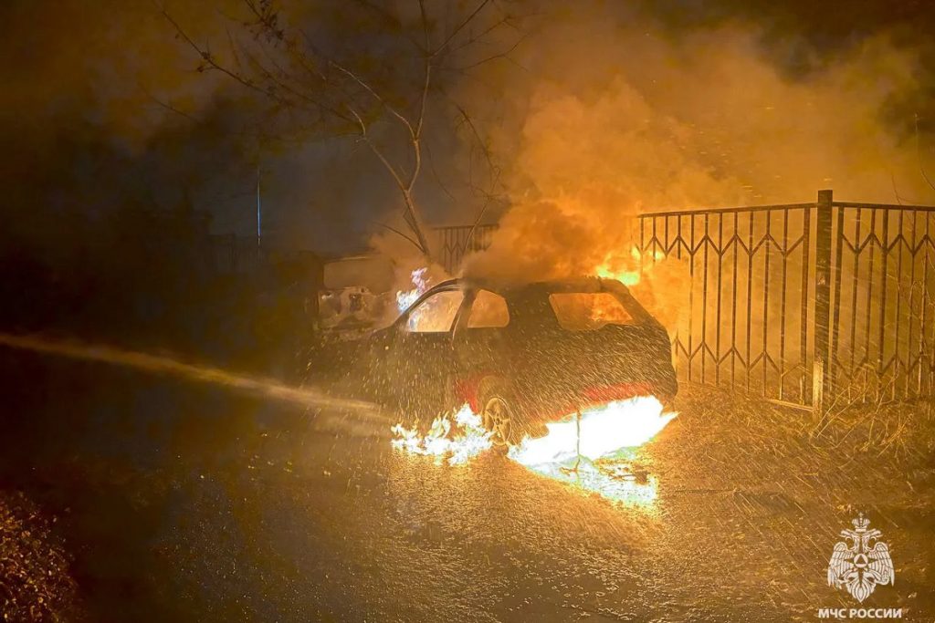 Прибывшие на место происшествия пожарные оперативно потушили машину, не дав огню перекинуться на рядом стоящее транспортное средство.