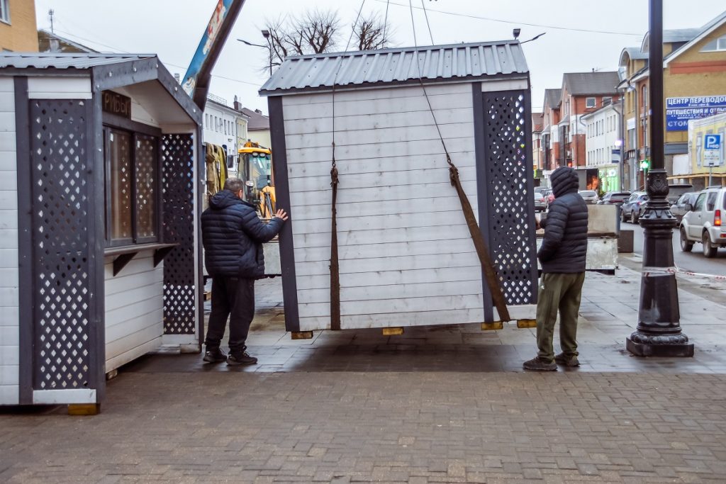 В Твери на бульваре Радищева начали устанавливать домики для праздничной торговли на традиционной Рождественской ярмарке.