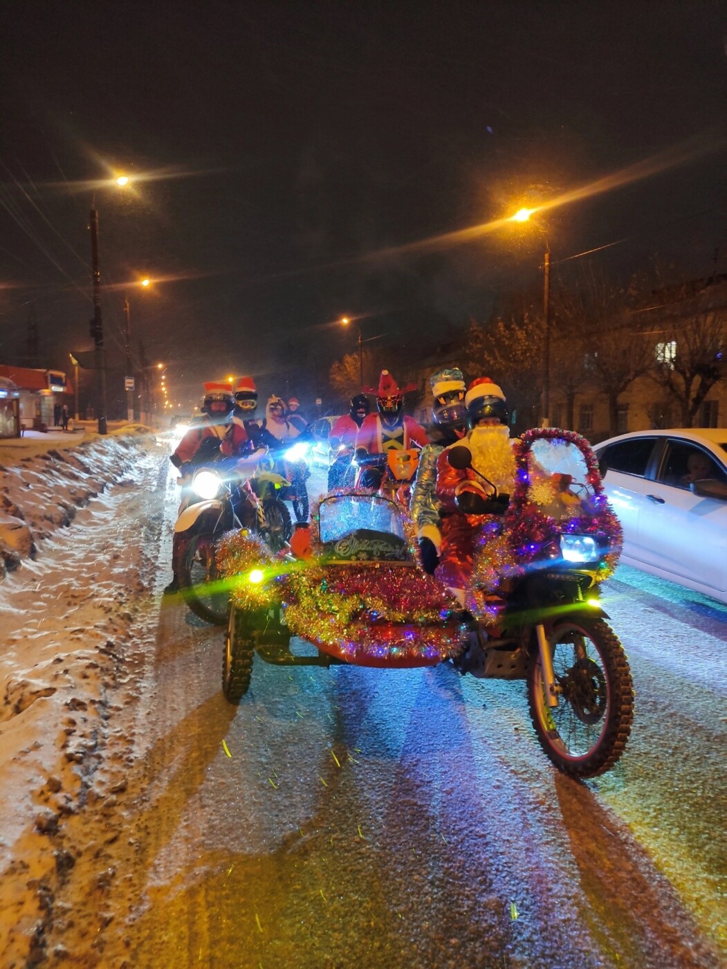В новогоднюю ночь в Твери заметили Деда Мороза со свитой на мотоциклах. Фото опубликовано в сообществе Вконтакте.