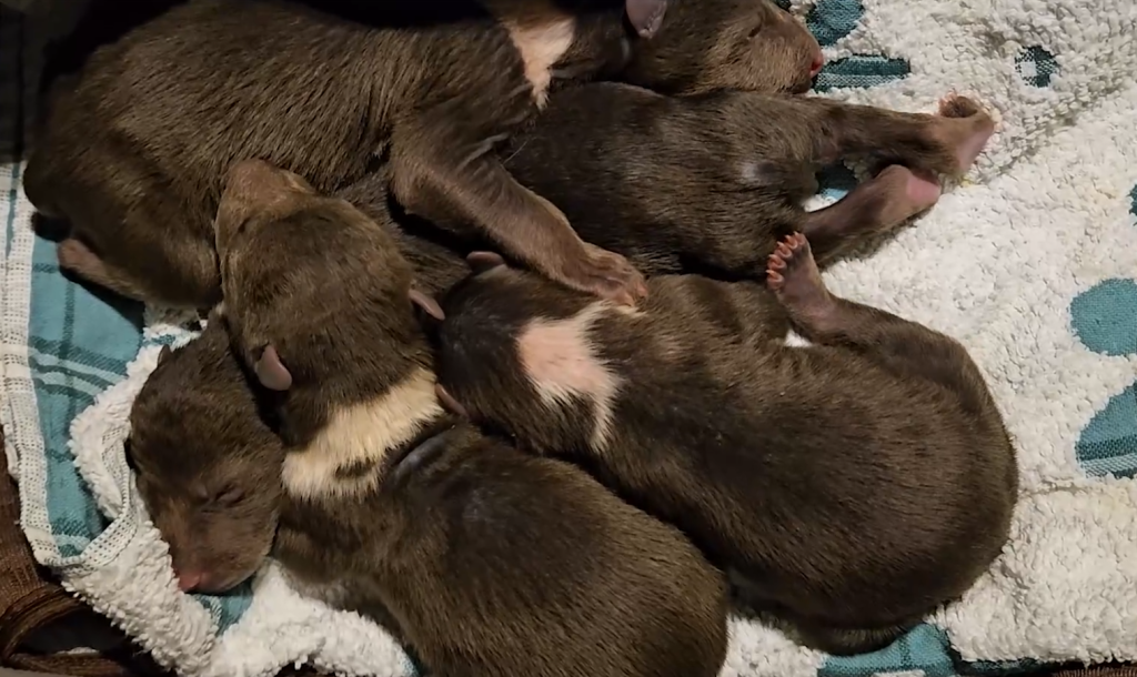 В результате на руках волонтеров центра оказалось трое мальчишек и девочка. У медвежат еще закрыты глаза и уши, шерстка у всех четверых темно-темно коричневая, а на шее, спине и на животиках расположены большие белые пятна, сквозь которые в первую неделю просвечивала розовая кожица.