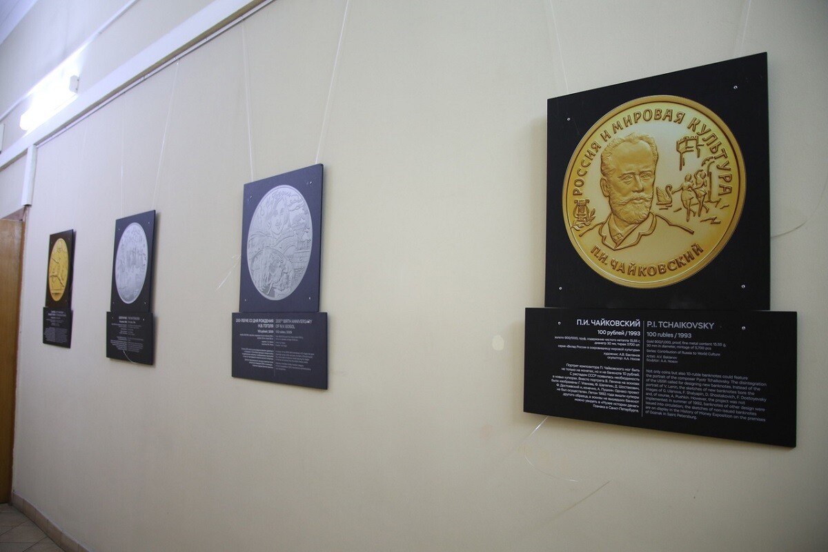 На выставке в ТГД можно увидеть памятные монеты, посвященные великим русским композиторам, хореографам, режиссерам, актерам и балеринам, а также выпущенные к юбилеям знаменитых учреждений культуры и искусства. Изображение каждой монеты сопровождает справка об истории ее создания.