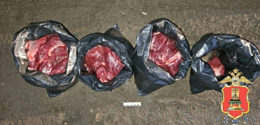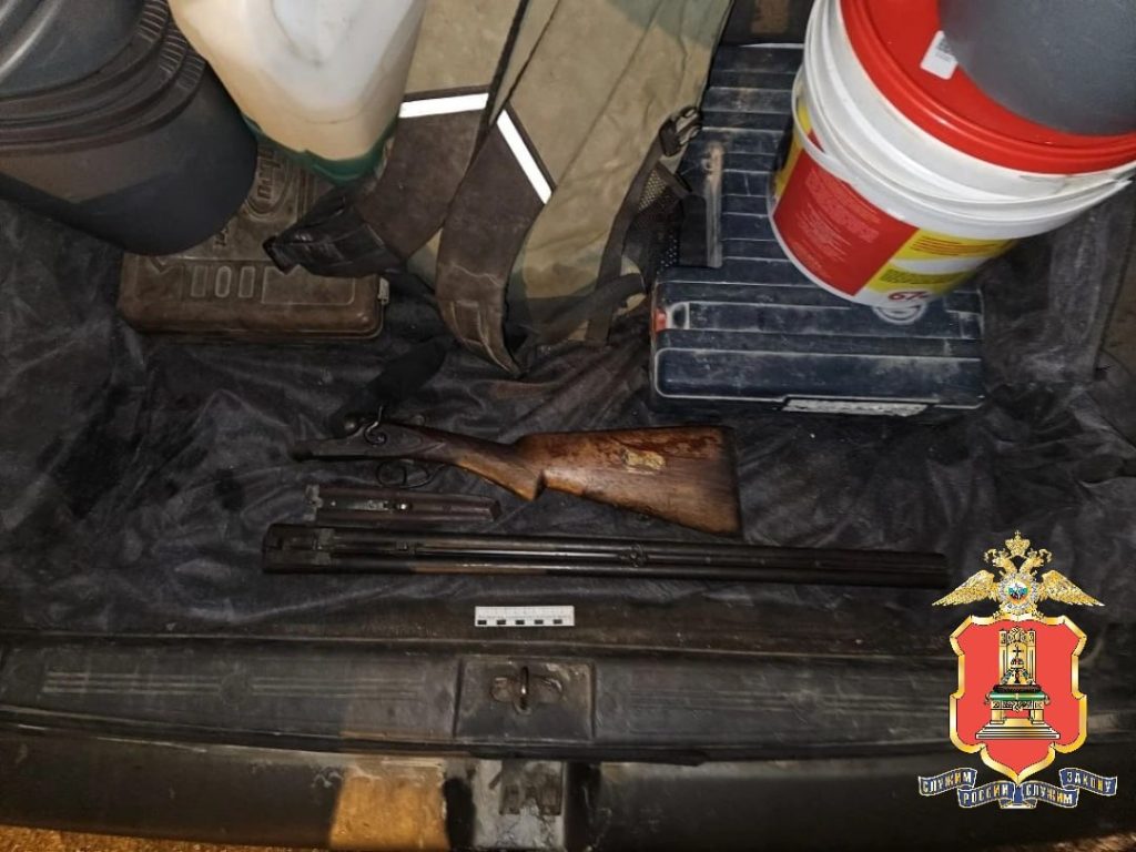 В ходе осмотра транспортного средства полицейские обнаружили незарегистрированное двуствольное гладкоствольное ружьё, несколько патронов и гильз, два ножа, тепловизор, радиостанцию и фонарик, а также пять пластиковых вёдер и порядка 40 килограммов мяса дикого животного, разложенного по четырём пакетам.