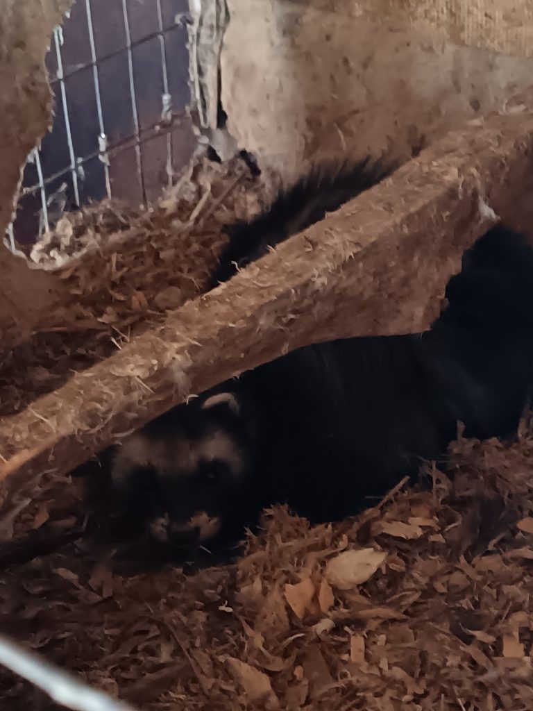 Дикий хорек пробрался в помещение, чтобы поохотится, но поскольку грызуны там оказались ему не по зубам, он решил хотя бы переждать мороз и снегопад в теплом месте.