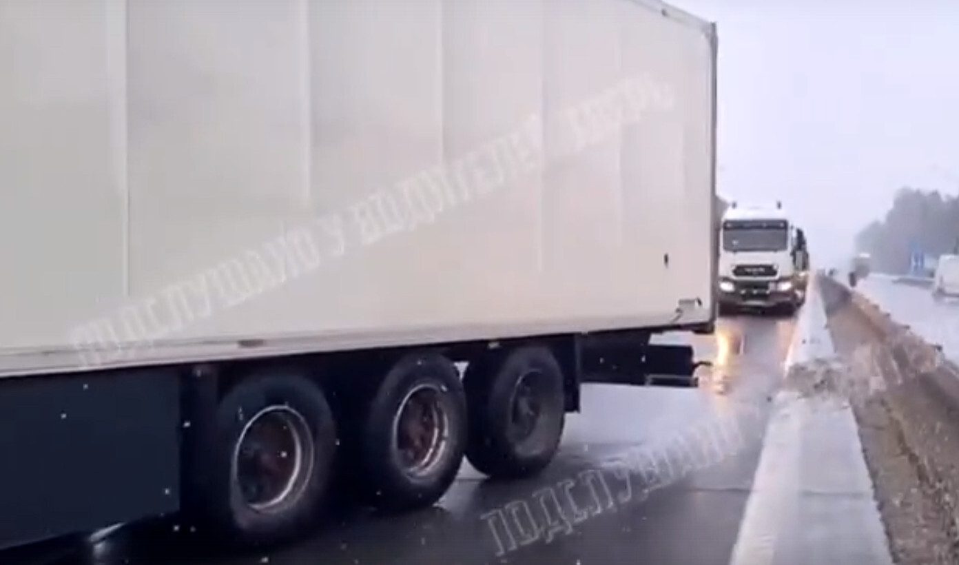 В Калининском районе Тверской области фура перекрыла трассу. Видео с места происшествия опубликовано в сообществе «Подслушано у водителей. Тверь» Вконтакте.