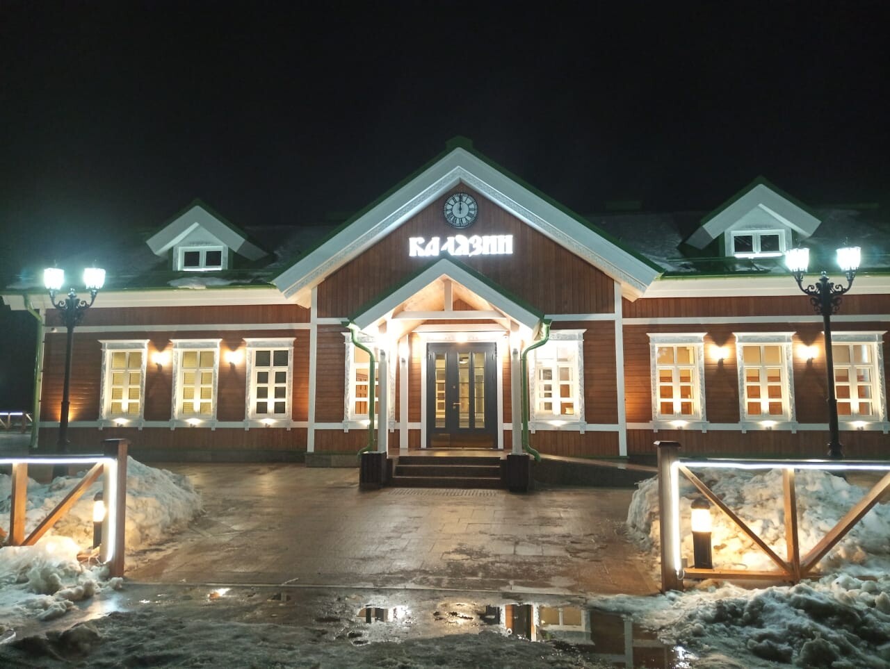 Сообщается, что работы по монтажу модульного здания вокзала выполнены полностью. Установлена подсветка здания снаружи, а внутри — декоративное панно с изображением колокольни Николаевского собора, главной достопримечательности Калязина. Также установлены скамейки и резной палисад в стиле калязинского кружева.