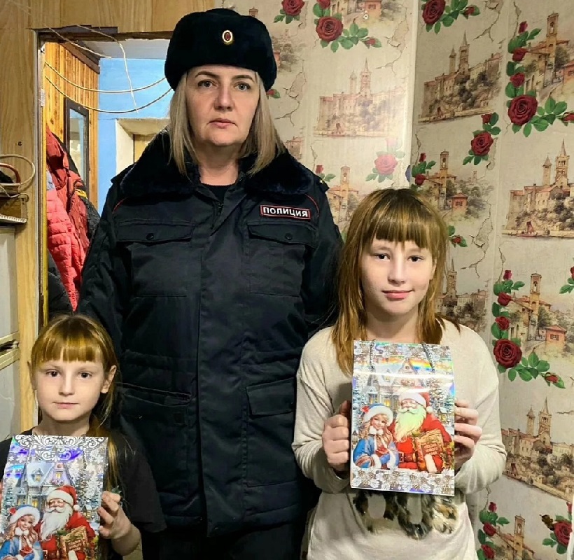 В преддверии Нового года в рамках акции «Полицейский Дед Мороз» в гостях у многодетных семей побывали сотрудники МО МВД России «Ржевский». Ребята читали полицейским стихи, а взамен получали сладкие подарки.