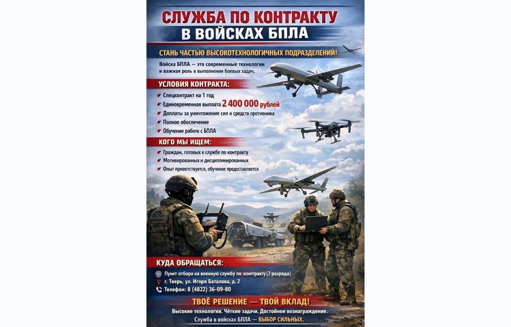 В Тверской области продолжается набор на военную службу по контракту в новые элитные войска беспилотных систем Вооруженных Сил Российской Федерации.