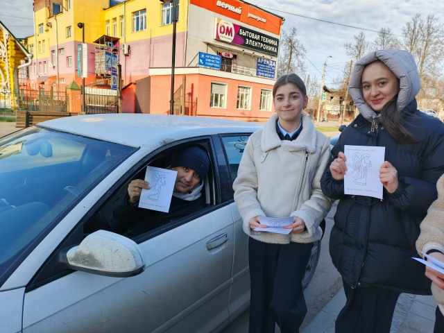 Школьники вручали водителям листовки о недопустимости вождения в нетрезвом виде, необходимости уступать дорогу пешеходам и соблюдать осторожность при маневрировании.
