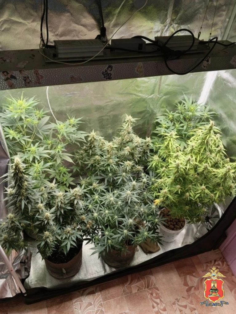 В ходе обыска в частном доме подозреваемого полицейские нашли мини-ферму для выращивания конопли: гроубоксы с освещением и поливом, вентиляторы, электронные весы, семь кустов конопли, а также оборудование для фасовки и упаковки наркотика.