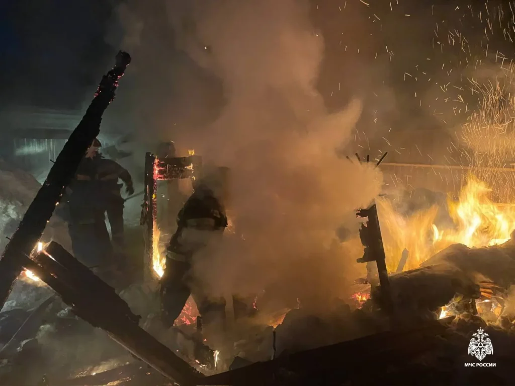 Специалисты не допустили распространение огня. Строение уничтожено полностью. Пострадавших нет.