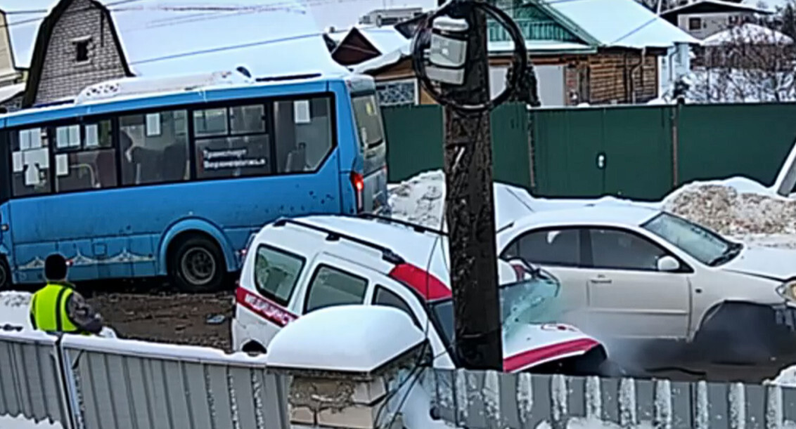 ДТП произошло у дома №20 по улице Победы. Санитарный автомобиль выехал на встречную полосу и столкнулся лоб в лоб с автобусом «Транспорта Верхневолжья». Затем в них врезалась Toyota.