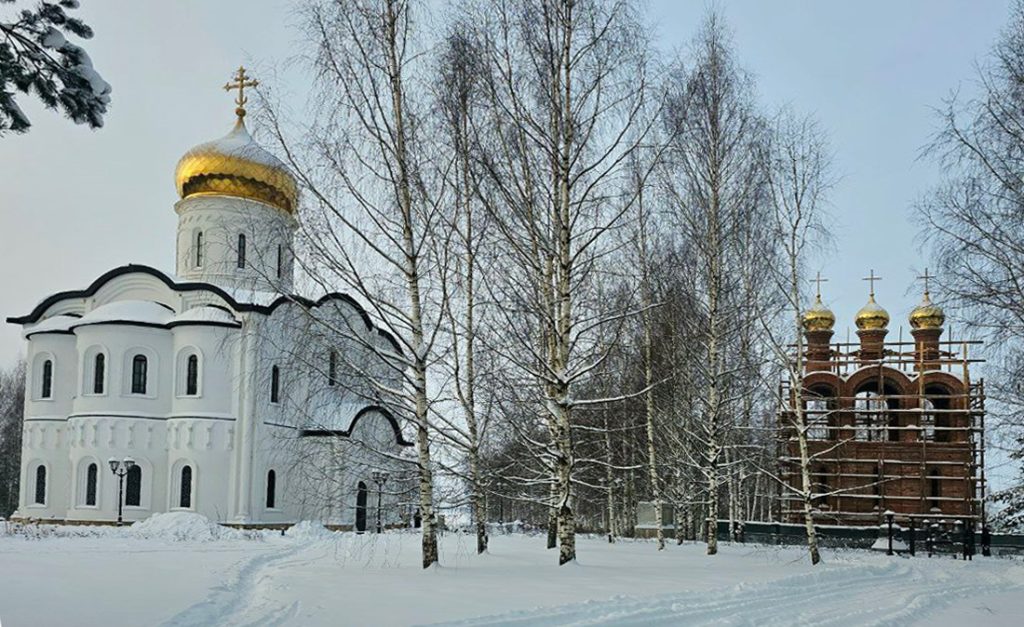На звоннице храма в честь Владимирской иконы Божией Матери, расположенном в деревне Селищи (СНТ «Никольское») Калязинского муниципального округа Тверской области, установлены купола с крестами.