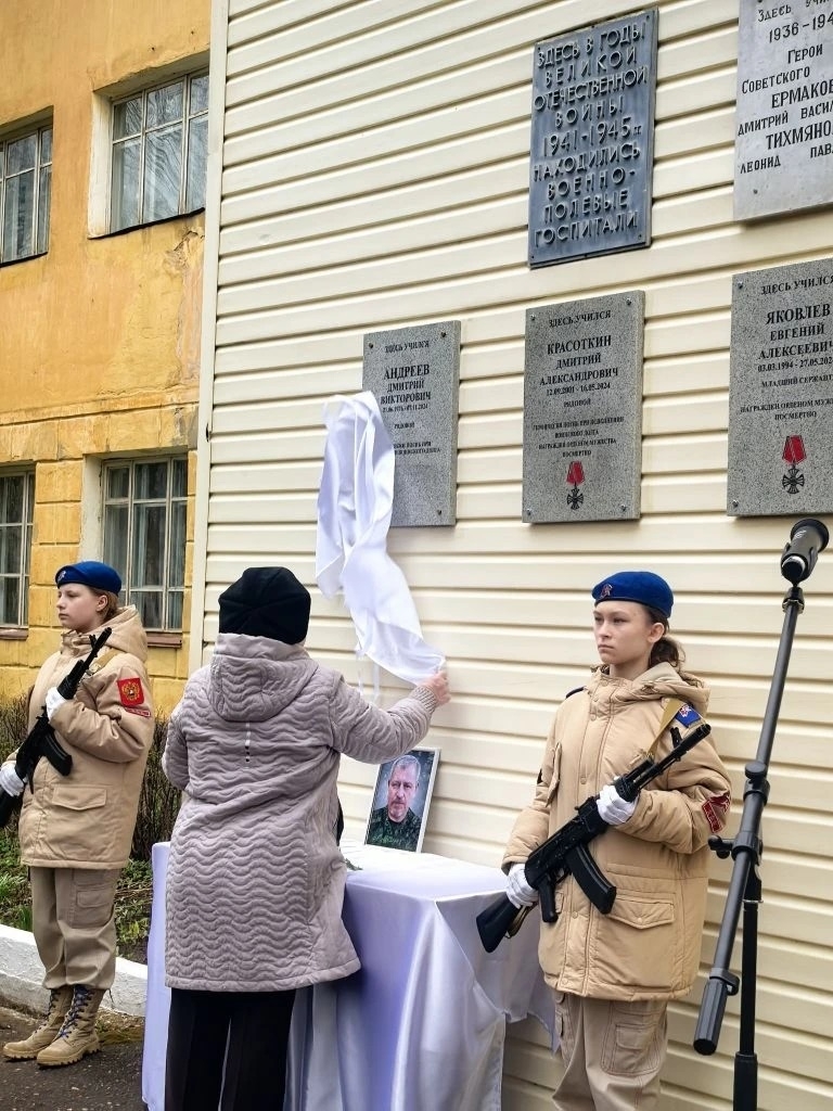 В Торжокском промышленно-гуманитарном колледже прошла торжественная церемония открытия мемориальной доски в честь Дмитрия Викторовича Андреева, погибшего при выполнении боевых задач в ходе специальной военной операции. Об этом рассказали в ВК-сообществе «Торжок Любимый Город.».