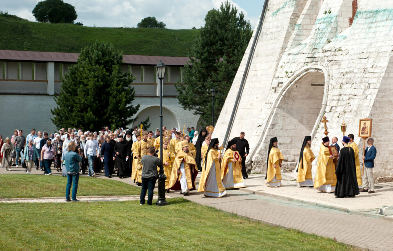 Памятные мероприятия в Старицком Свято-Успенском монастыре начались с Божественной литургии, которую провел митрополит Тверской и Кашинской Амвросий. Затем состоялся Крестный ход.