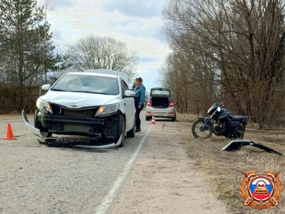 Kia Rio при обгоне транспортного средства, движущегося впереди по той же полосе, с включенным сигналом поворота налево, столкнулась с мопедом, за рулем которого находился 14-летний подросток.