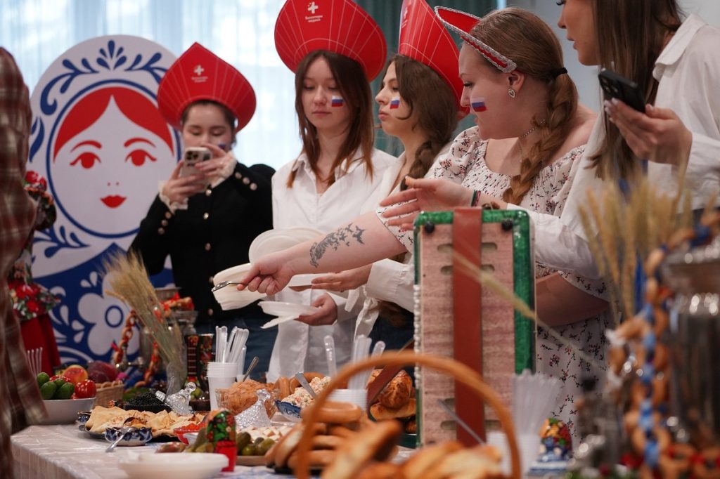 Гостей ждали ярмарка национальных блюд, мастер-классы и большой праздничный концерт. Студенты познакомились с костюмами и предметами быта разных стран, попробовали экзотические восточные сладости, блюда из мяса с ароматными специями, закуски с сыром и травами. Русская кухня была представлена традиционными новогодними блюдами – салатом оливье, свежим хлебом с маслом, икрой и соленьями.