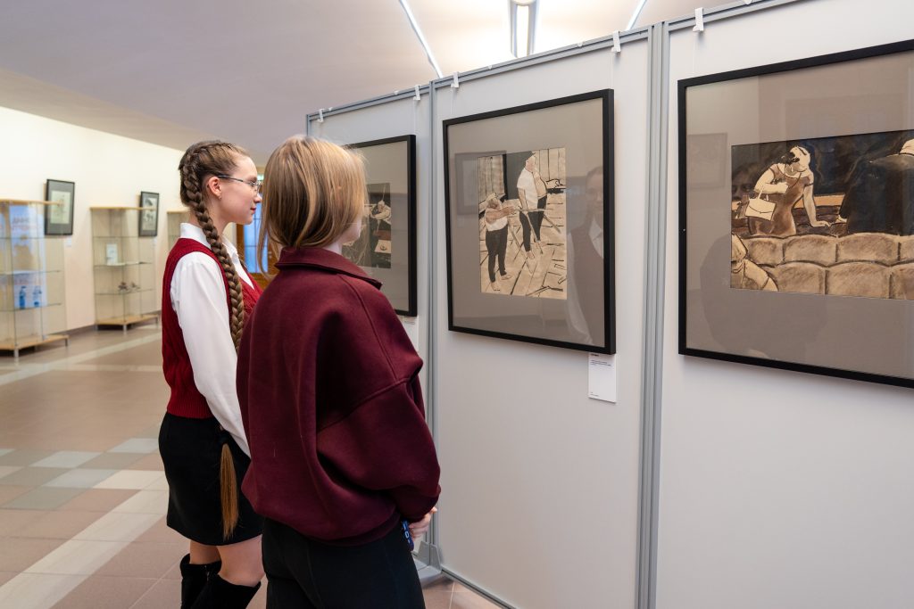 «Это гениальный график. Он ироничен, свободен и остроумен. Здесь с помощью минимальных художественных средств создана невероятная атмосфера каждой эпохи. В несколько линий складывается целый образ, который, как портал, мгновенно переносит нас в определённое историческое время. Например, война – проникновенная до дрожи», – поделилась впечатлениями директор Удомельского краеведческого музея Елена Симакина.