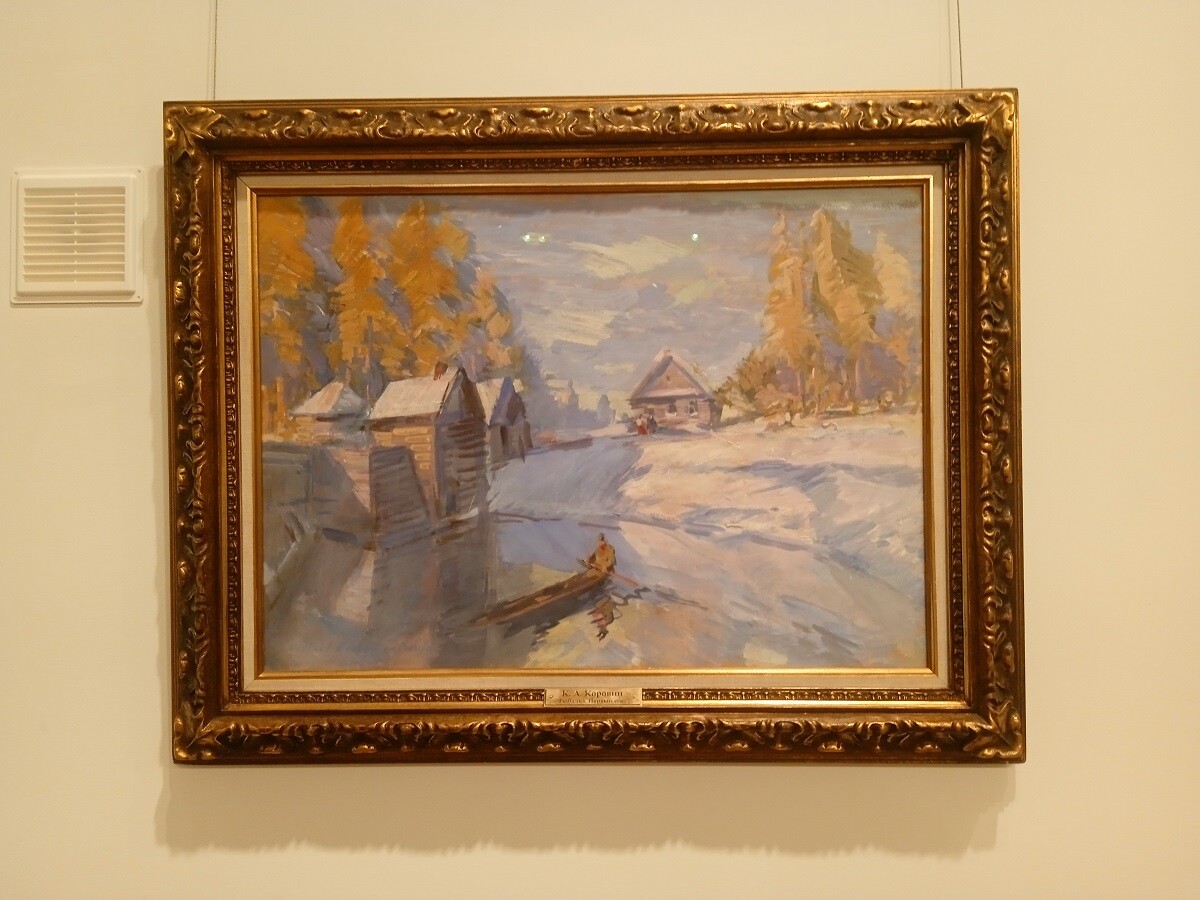 Возможно из-за тесных связей с Тверской областью экспозицию выставки открывает картина Константина Коровина «Ноктюрн». На выставке можно увидеть еще одну его картину – «Рыбалка. Первый снег», она как раз написана в Островно.