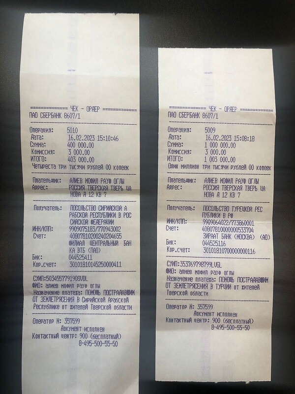 17 февраля тверские азербайджанцы отвезли гуманитарный груз в представительства Турции и Сирии в Москве. Денежные средства были перечислены на официальные счета посольств.