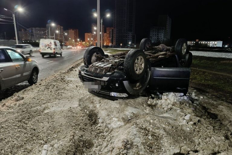 В сообщении говорится, что водитель ехал на скорости, превышающей безопасную в условиях обледенения на дороге. В итоге, он не справился с управлением, а машину выбросило на обочину, где она и перевернулась. Сообщается также, что ни водитель, ни кто-либо еще не пострадал.
