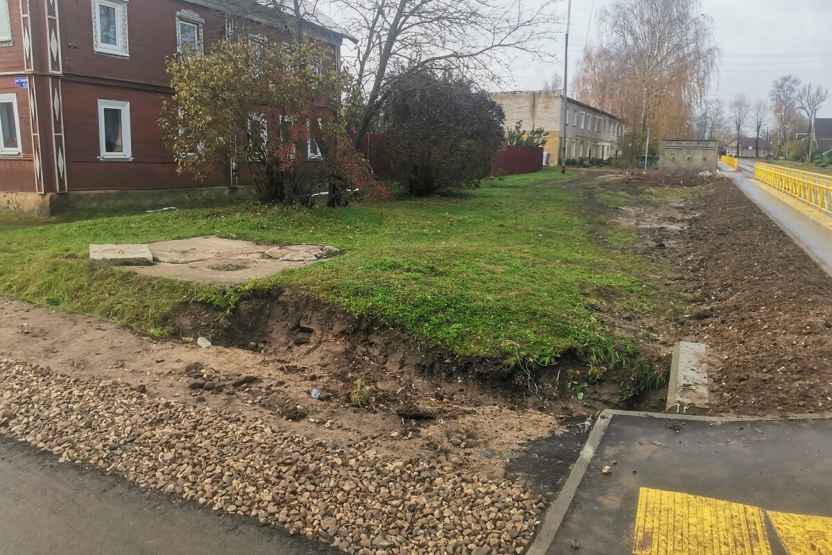 Забором перегорожены въезды и выезды из расположенных на улице жилых домов. Ни машину не припаркуешь, ни разгрузишь какие-либо грузы, и, учитывая, что часть жилого фонда здесь с печным отоплением, получается, что даже дрова не привезешь. Мало того, к домам не смогут подъехать ни скорая, ни пожарные. Даже снег неизвестно как тут почистить. Нарушена гидравлика, ливневая канализация при сооружении бордюров не предусмотрена, вода, которой некуда стечь, тоже идет к домам – зимой во время оттепелей это создаст большие проблемы.